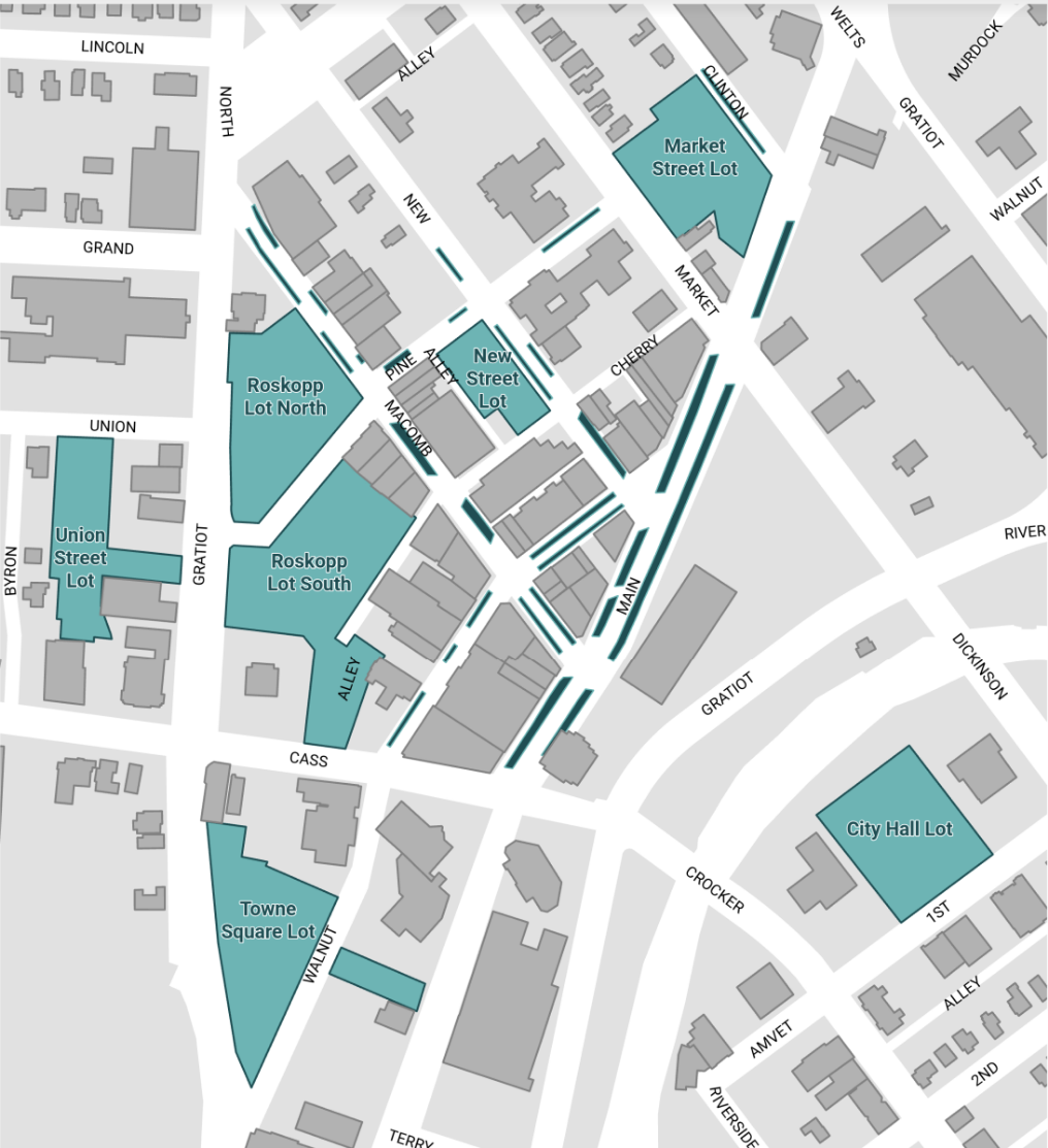 Parking enforcement is in effect Monday through Friday 8:00 a.m. to 6:00 p.m., with the exception of holidays. All electronic meters in Mount Clemens accept nickels, dimes, and quarters. You may also use the Park Mobile app or apply for a City Pass for designated lots. There is an EV spot available in the Roskopp Lot.